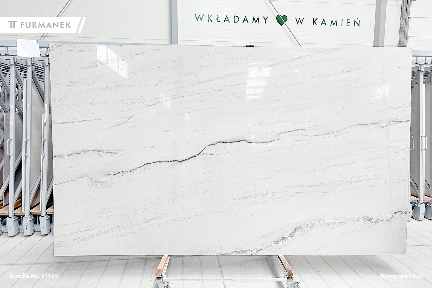 Mont Blanc quartzite slabs. They come in the following surface variants: polished and brushed. Quartzite Mont Blanc is frost resistant. Quartzite will find its use indoors as well as outdoors. Our slabs are additionally selected (sorted by shade and color). Ideally suited for underfloor heating. Our slabs meet the highest standards of thickness tolerance and surface finish. Application: wall cladding, window sill, facade, kitchen countertops, bathroom countertops, stairs, fireplace, floor.