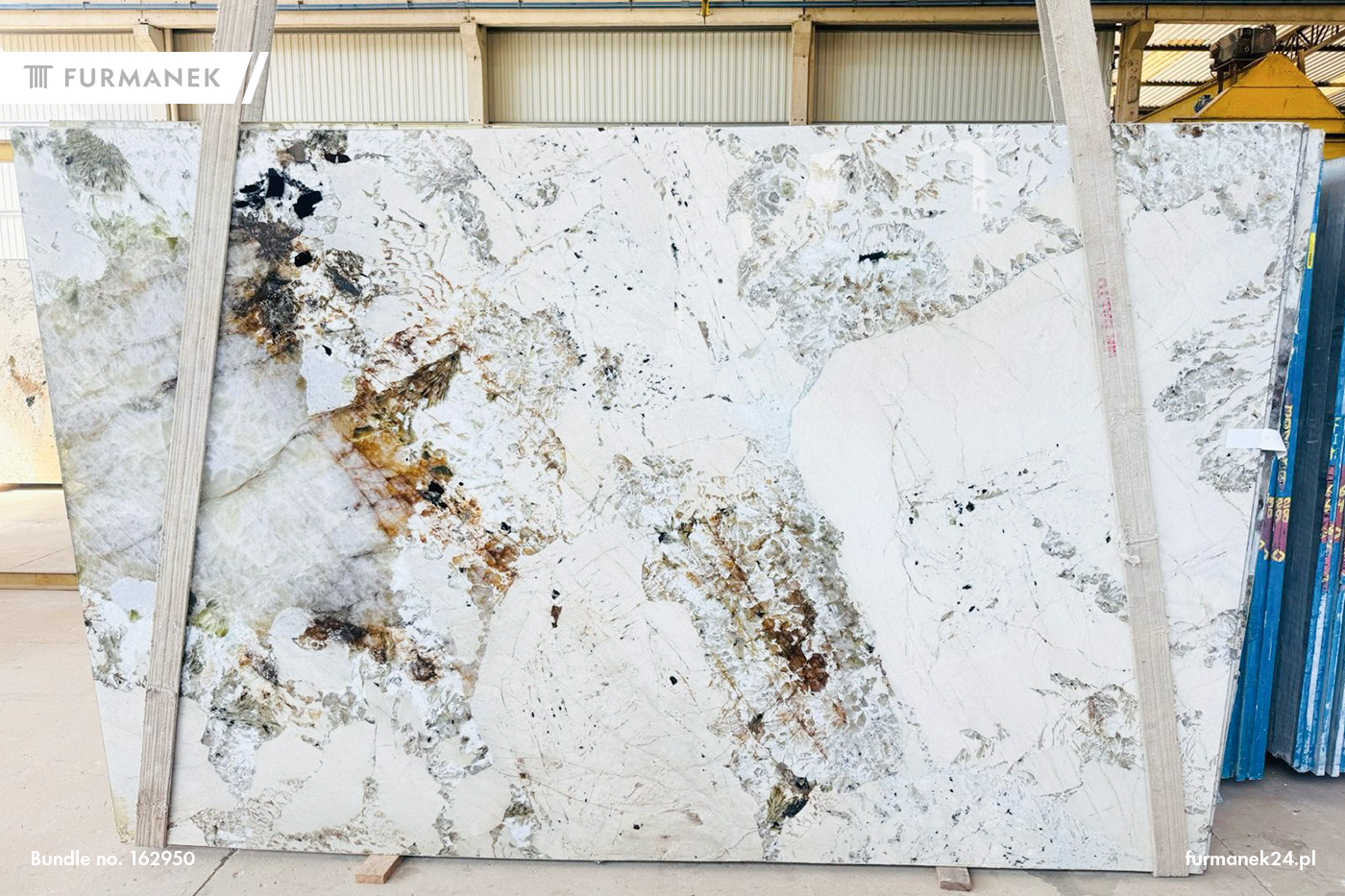 Alpinus Crystal granite slabs. They come in the following surface variants: polished and satin-finished. Our slabs meet the highest standards of thickness tolerance and surface finish. Ideally suited for underfloor heating. Granite Alpinus Crystal is frost resistant. Granite will find its use indoors as well as outdoors. Our slabs are additionally selected (sorted by shade and color). Application: wall cladding, window sill, facade, kitchen countertops, bathroom countertops, stairs, fireplace, floor.