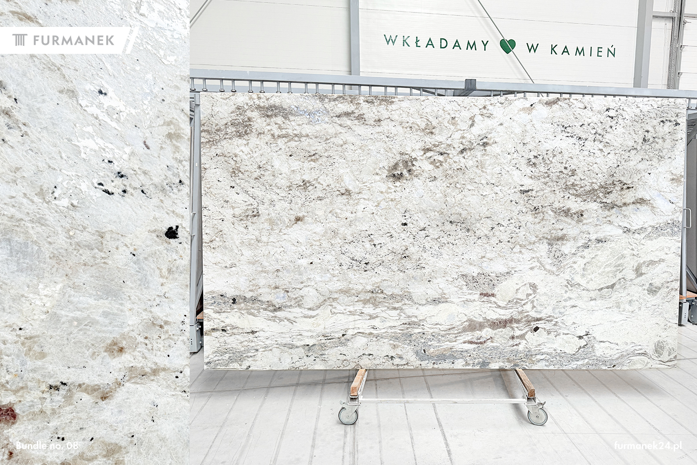 Alaska Light granite slabs. They come in the following surface variants: satin-finished. Ideally suited for underfloor heating. Our slabs meet the highest standards of thickness tolerance and surface finish. Our slabs are additionally selected (sorted by shade and color). Application: wall cladding, window sill, facade, kitchen countertops, bathroom countertops, stairs, fireplace, floor.