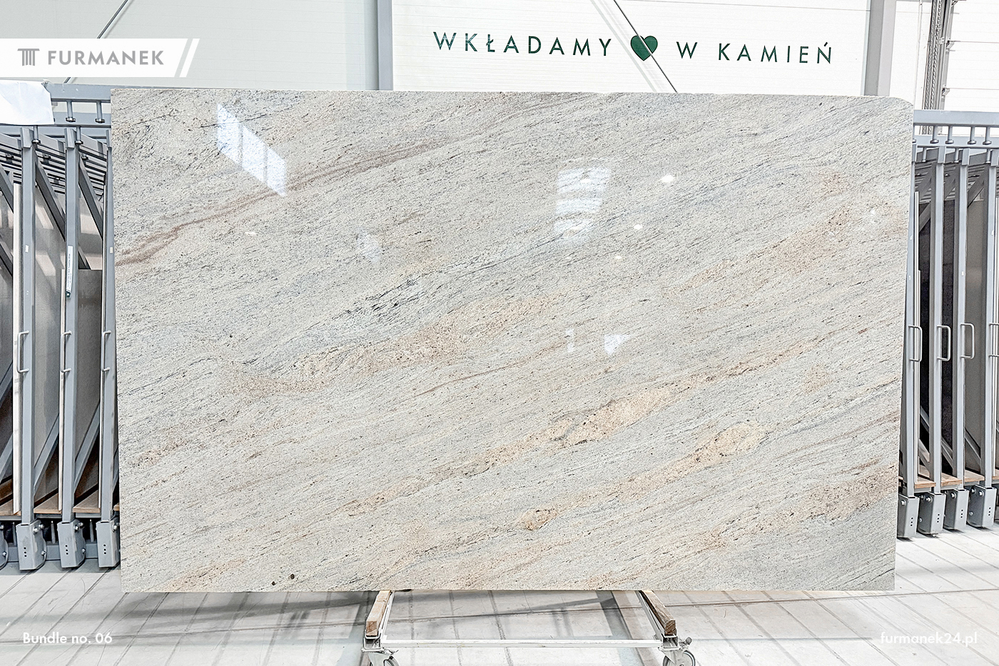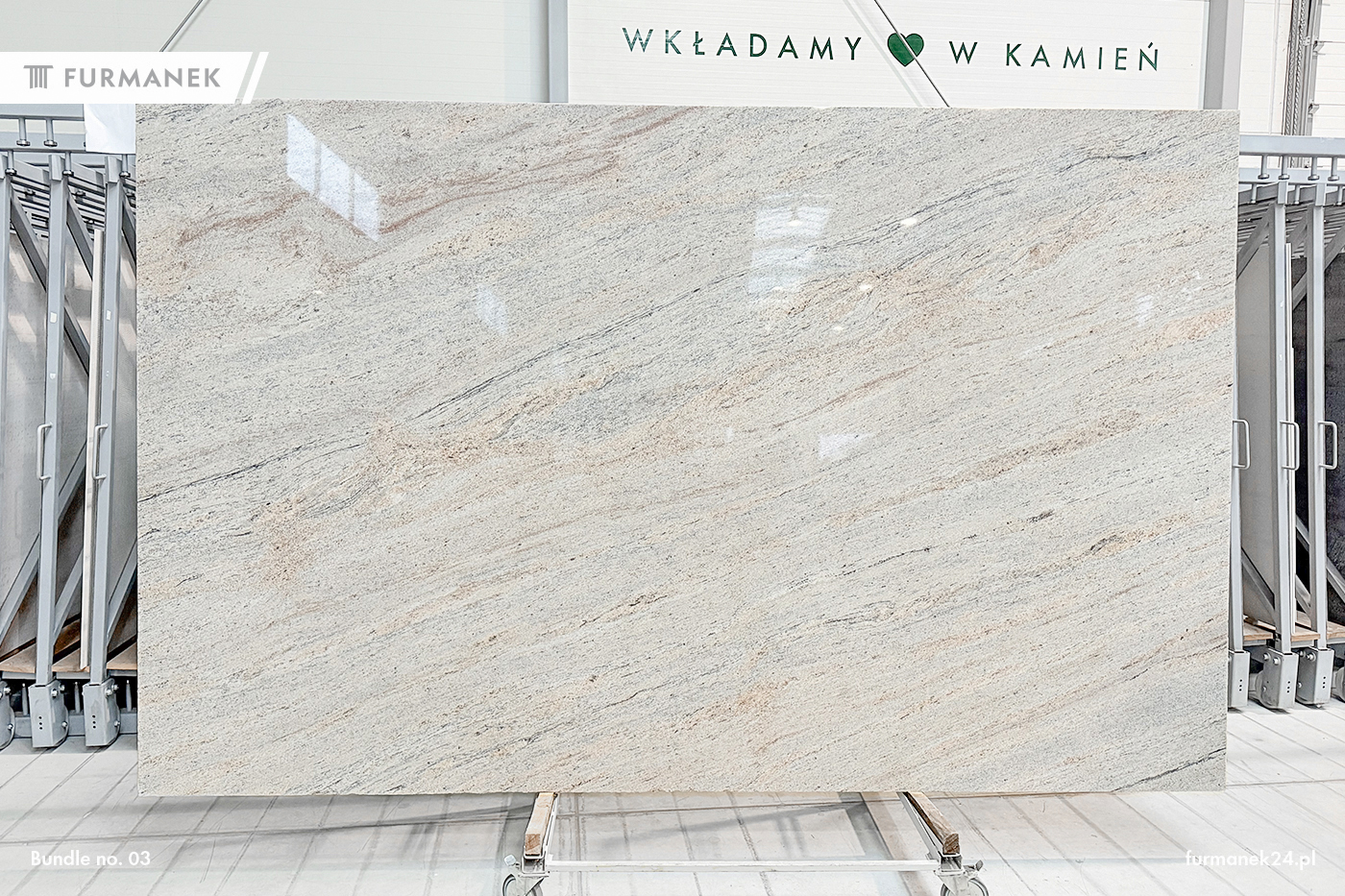 Colonial Ivory granite slabs. They come in the following surface variants: polished. Granite will find its use indoors as well as outdoors. Our slabs are additionally selected (sorted by shade and color). Our slabs meet the highest standards of thickness tolerance and surface finish. Ideally suited for underfloor heating. Granite Colonial Ivory is frost resistant. Application: wall cladding, window sill, facade, kitchen countertops, bathroom countertops, stairs, fireplace, floor.