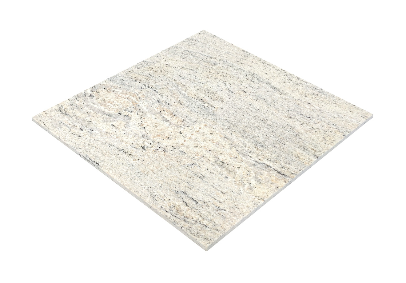 Colonial Ivory granite tiles. Tiles have the following parameters: size 60x60x1,5 cm and polished surface. Application: wall cladding, facade, stairs, terrace, floor. Colonial Ivory stone tiles are frost resistant. Premium quality means that they meet the highest standards of dimensional tolerance and surface finish. Ideally suited for underfloor heating. Tiles are additionally selected (sorted by shade and color). The tiles feature an elegant bevel of the top edges. They owe their perfectly uniform thickness to a calibration process.