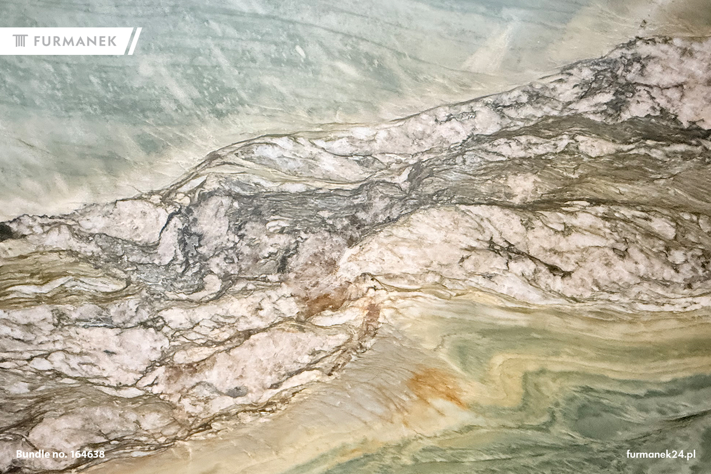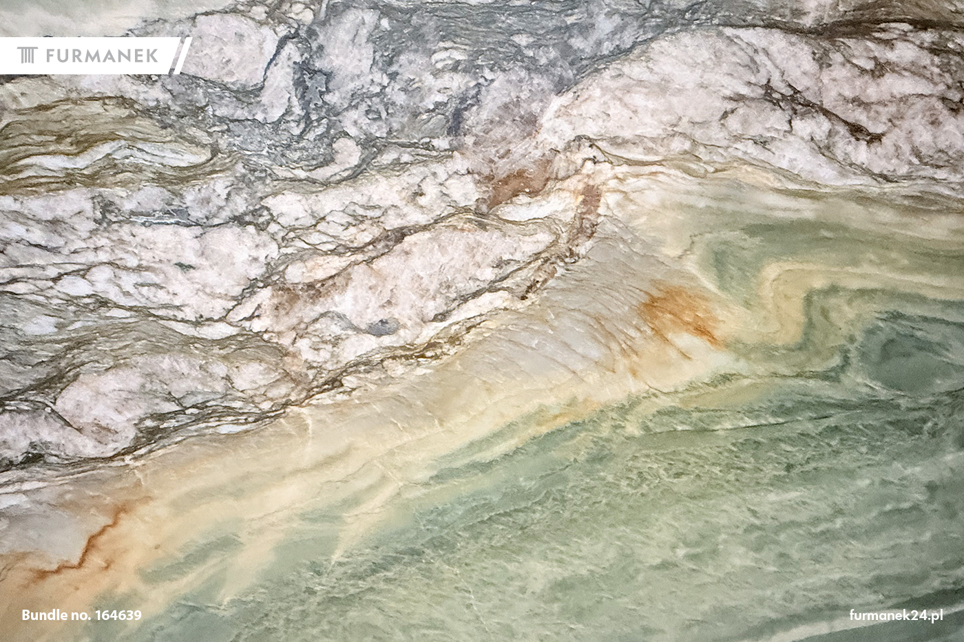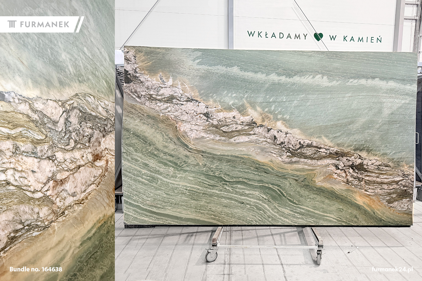Maestro Cristalizzato to kamień naturalny o wyjątkowo dynamicznym i dekoracyjnym rysunku, który przyciąga uwagę złożoną strukturą oraz wyraźnymi przejściami kolorystycznymi. Na powierzchni płyty widoczne są nieregularne pasma zieleni, szarości oraz jasnych, niemal krystalicznych partii, tworzące efekt głębi i naturalnego ruchu. Charakterystyczna struktura kamienia sprawia, że każda płyta jest unikatowa i niepowtarzalna, co ma szczególne znaczenie w projektach, gdzie kamień pełni rolę dominującego elementu aranżacji. Maestro Cristalizzato doskonale wpisuje się w nowoczesne wnętrza inspirowane naturą, ale równie dobrze odnajduje się w projektach o bardziej luksusowym charakterze. Kamień ten cechuje się wysoką trwałością oraz odpornością na codzienne użytkowanie, dzięki czemu znajduje zastosowanie w przestrzeniach wymagających zarówno estetyki, jak i funkcjonalności. Duże formaty płyt umożliwiają pełne wyeksponowanie krystalicznego rysunku bez nadmiernych podziałów. W takich realizacjach doskonale sprawdzają się slaby kamienne na schody, które pozwalają stworzyć spójne i efektowne ciągi komunikacyjne z naturalnego kamienia.