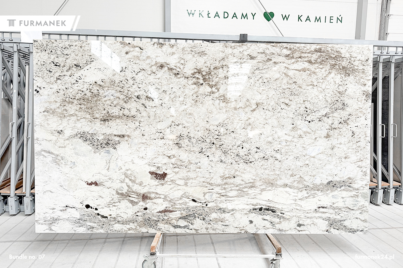Płyty granitowe Alaska Light. Występują w powierzchni polerowanej. Nasze slaby są dodatkowo selekcjonowane (poddane segregacji pod względem odcienia i kolorystyki). Granit znajdzie swoje zastosowanie wewnątrz pomieszczeń jak i na zewnątrz. Granit Alaska Light jest mrozoodporny. Nasze płyty spełniają najwyższe standardy tolerancji grubości oraz wykończenia powierzchni. Idealnie nadają się na ogrzewanie podłogowe. Zastosowanie: okładzina ścienna, parapet, elewacja, blaty kuchenne, blaty łazienkowe, schody, kominek, podłoga.