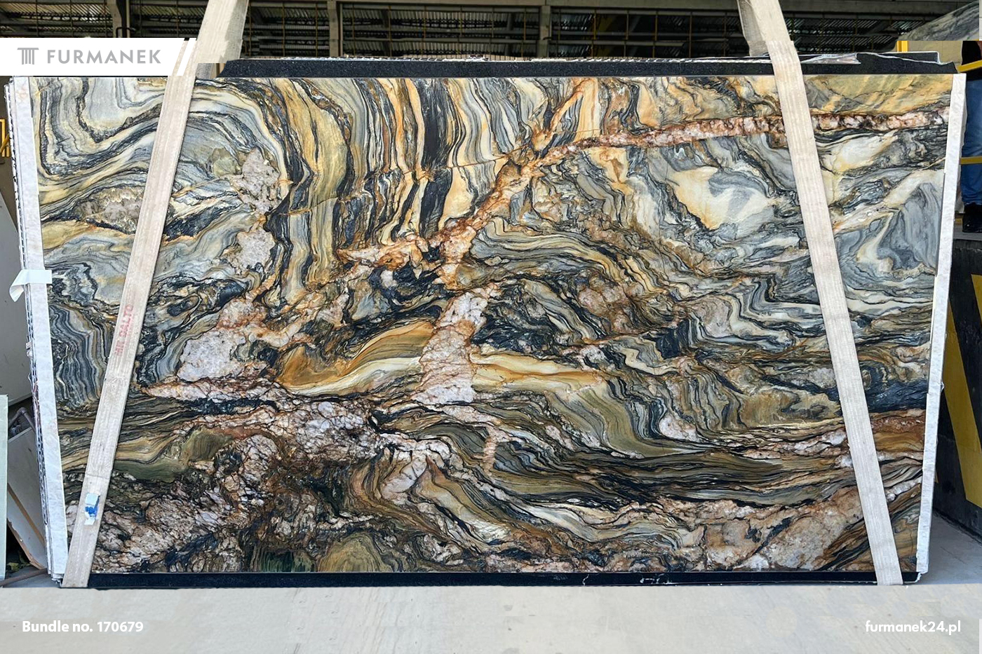 Kwarcyt Blue Caravaggio to jeden z najbardziej wyrazistych kamieni naturalnych klasy premium, wyróżniający się niezwykle dynamiczną strukturą oraz bogatą, wielowarstwową kolorystyką. Na powierzchni płyty przenikają się odcienie głębokiego granatu, grafitu, ciepłych brązów, złota oraz jasnych, niemal białych żył, tworząc efekt przypominający abstrakcyjne malarstwo. Naturalny rysunek kamienia jest intensywny, ale harmonijny, dzięki czemu każda płyta Blue Caravaggio staje się unikatowym elementem aranżacji. Kwarcyt ten doskonale wpisuje się w nowoczesną architekturę oraz projekty wnętrz, w których kamień pełni rolę dekoracyjnego akcentu o silnym charakterze. Jako skała metamorficzna Blue Caravaggio cechuje się bardzo wysoką twardością, odpornością na ścieranie oraz stabilnością strukturalną, co czyni go materiałem trwałym i funkcjonalnym. Duże formaty pozwalają na pełne wyeksponowanie naturalnego użylenia bez nadmiernych podziałów. W ofercie Hurtowni Kamienia Furmanek dostępne są slaby kamienne na ścianę, które umożliwiają realizację prestiżowych projektów z zachowaniem spójności wzoru i maksymalnego efektu wizualnego.
